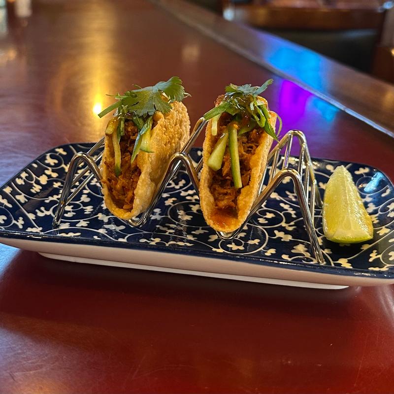 Pulled duck confit, spicy hoisin, apricot chili, crispy wonton shell.